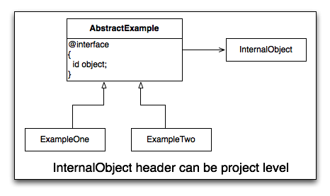 On thing to note is that in both cases, the AbstractExample is public even though we do not want anyone extending it. Because both ExampleOne and ExampleTwo are subclasses of AbstractExample its header must therefore be included in the framework. To make this a little confusing, this is NOT the case if the application and the framework both exist in the same project! If we look at the included project (called Example), and turn AbstractExample to project, everything will work just fine. However, if we take that compiled framework and use it in the second included project (called Test), it will fail. Therefore depending on how we are going to use the framework, superclasses will probably need to be included.
